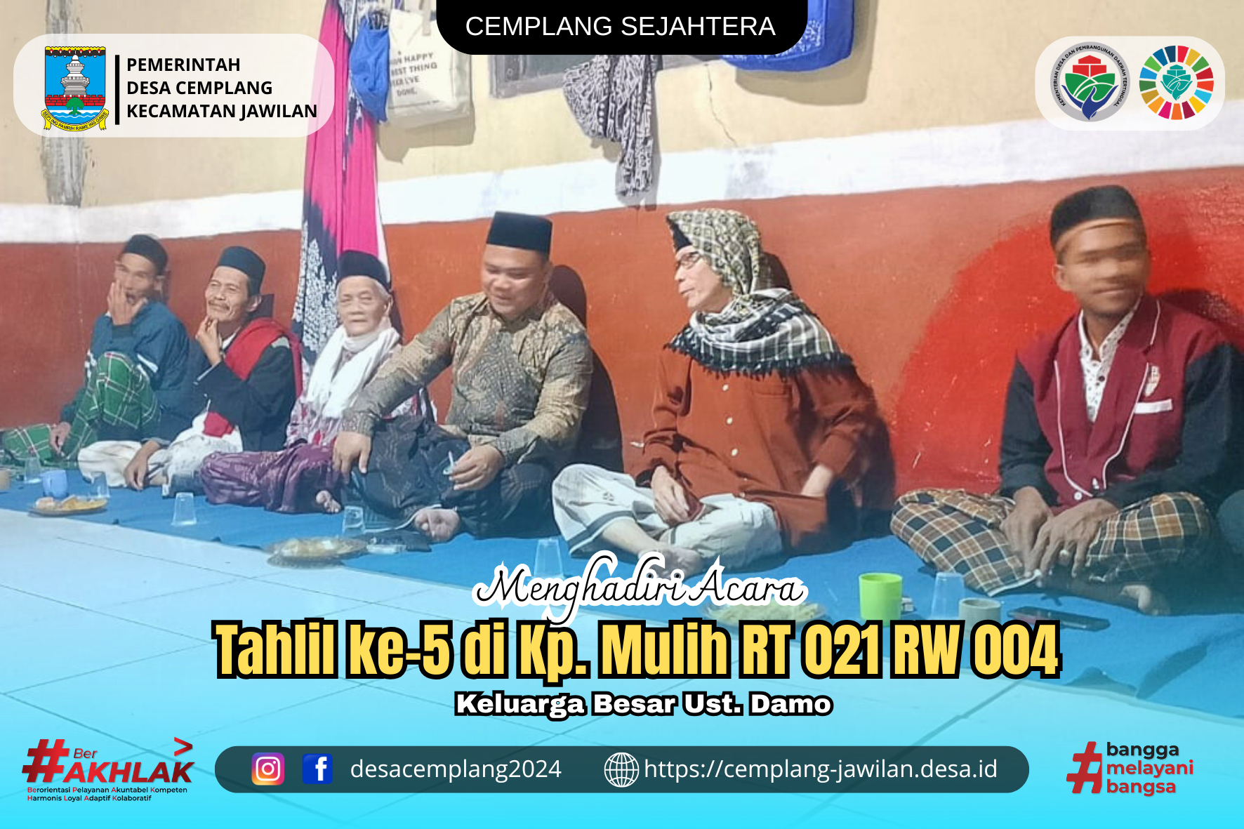 Acara tahlil ditutup dengan ramah tamah sederhana, mencerminkan eratnya rasa kebersamaan dan silaturahmi warga Desa Cemplang.