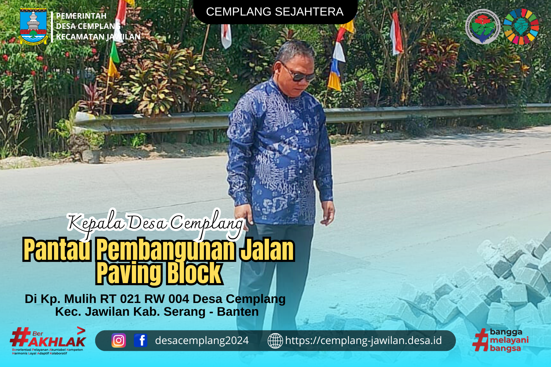 Kepala Desa Cemplang, Bpk. Agustani turun langsung ke lokasi pada saat pengerjaan berlangsung untuk memantau progres pembangunan. Kehadiran beliau disambut baik oleh warga sekitar yang antusias dengan adanya peningkatan fasilitas jalan.