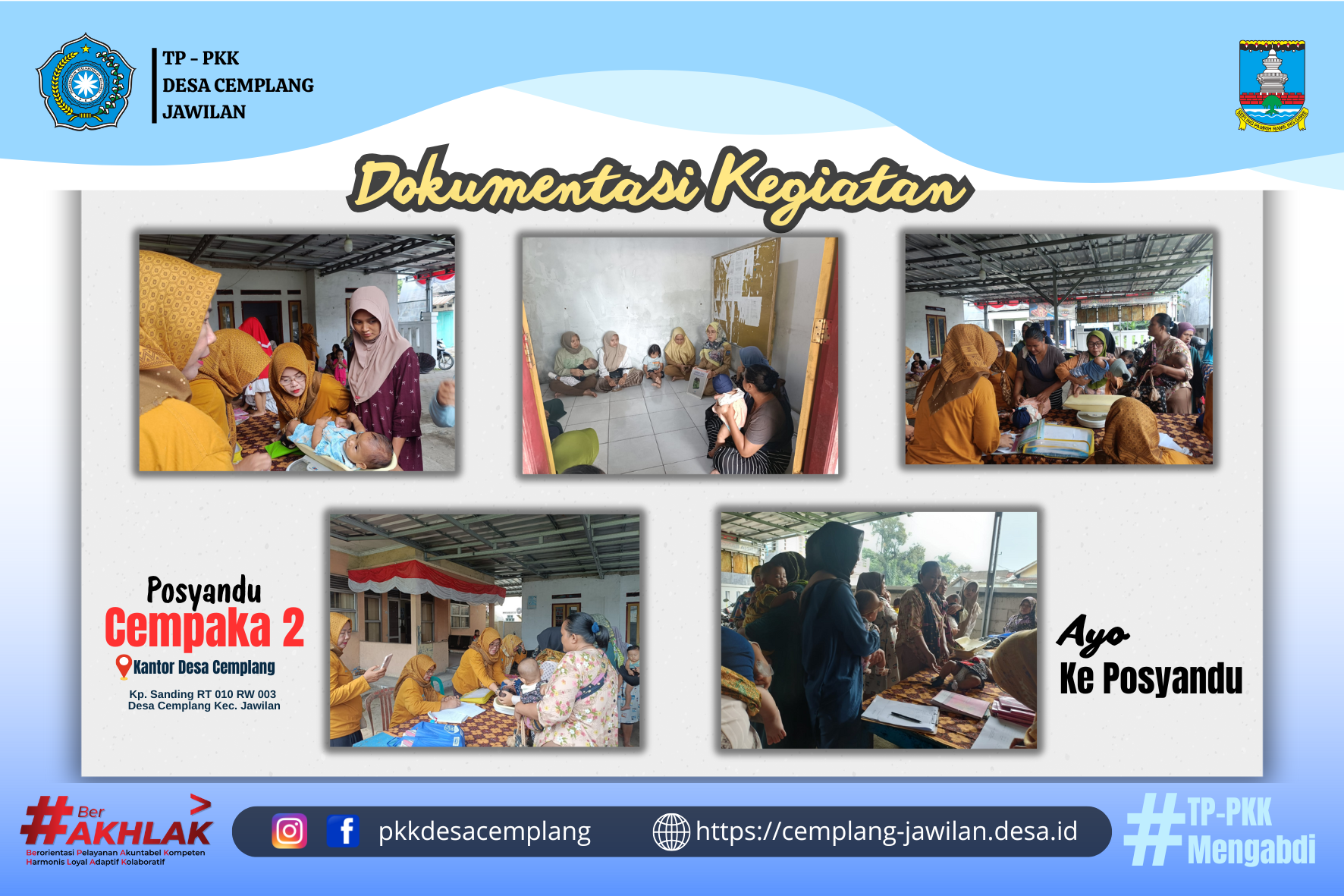 Cemplang, 12 Agustus 2025 — Pos Pelayanan Terpadu (Posyandu) Desa Cemplang kembali menggelar kegiatan rutin bulanan yang bertujuan meningkatkan kesehatan masyarakat, khususnya ibu hamil, bayi dan balita. Kegiatan yang berlangsung di POS 2 tepatnya di halaman Kantor Pemerintahan Desa Cemplang ini dihadiri puluhan warga yang antusias memanfaatkan kegiatan Posyandu tersebut.