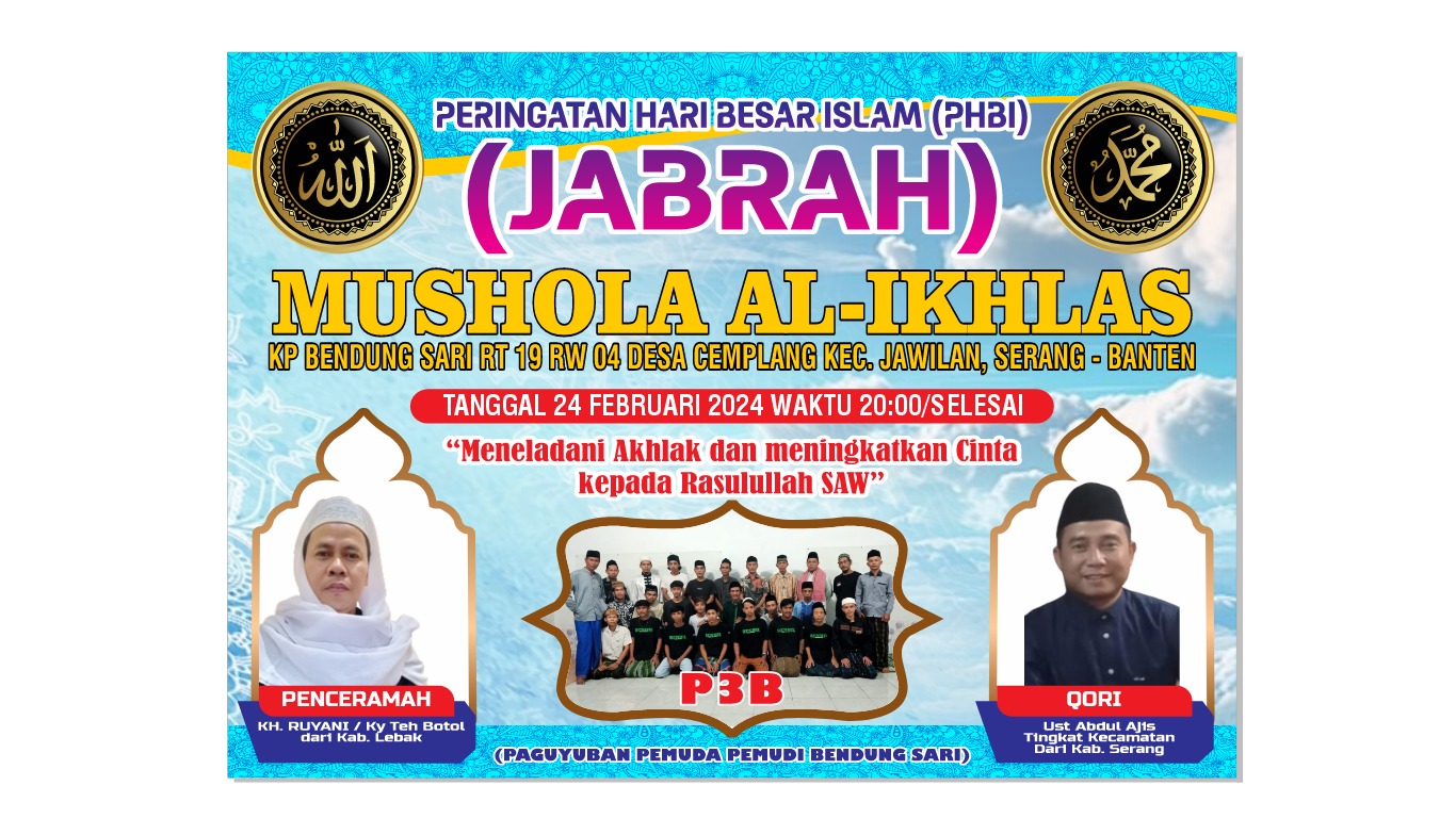 Minggu Malam Senin, 04 Maret 2024 Telah dilaksanakan kegiatan acara yg cukup langka taswiran Bapak-Bapak di majlis Ta’lim AL-pirqotunaziah.yang bertempat di kp.simpangsari RT/RW : 17/04 Ds. Cemplang kec. Jawilan. Acara ini diadakan rutin setiap 1 tahun sekali biasanya dilaksanakan oleh anak-anak disetiap kampung di Desa Cemplang, bertujuan untuk : 1. Belajar lebih berani untuk berdiri […]